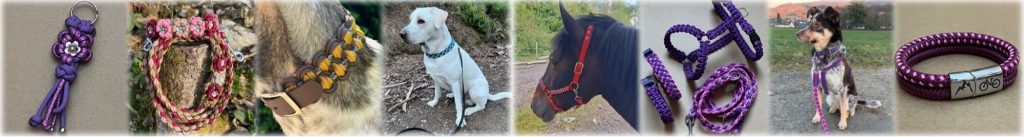 Mittlerweile fertige ich nicht nur Halsbänder, sondern auch Leinen, Pferdehalfter und andere Dinge wie Armbänder, Handyketten, Schlüsselanhänger und Pfeifenbänder an.