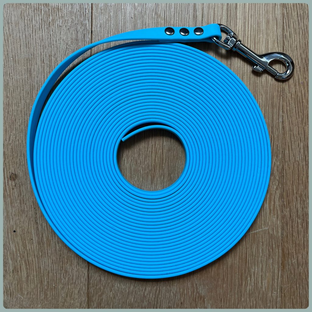 Leine, Biothane „Grippy“ (besonders griffiges Material) ca. 2m lang, 19mm breit, 25€. Aus Standard-Biothane 20€