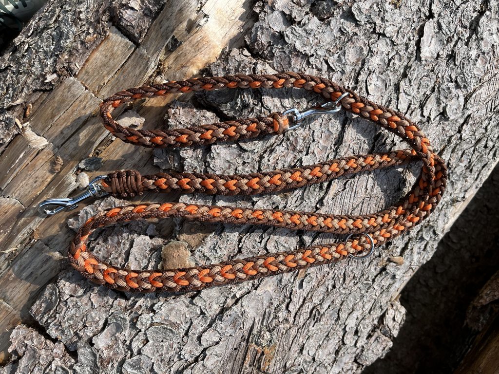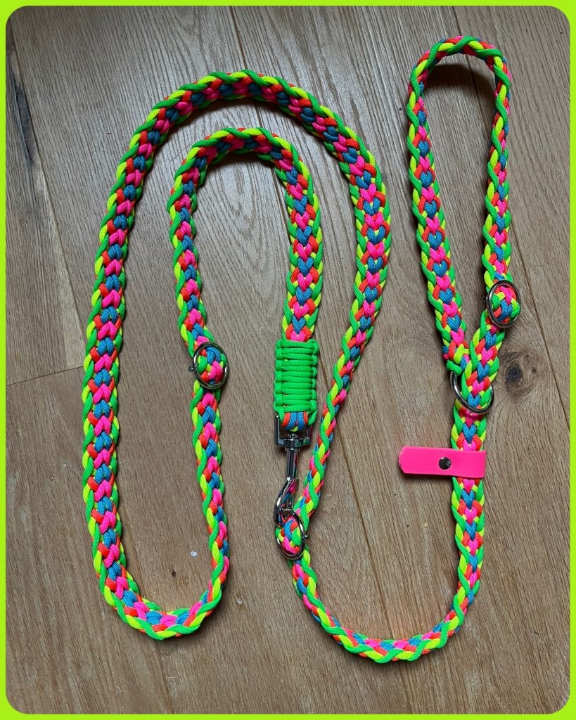 3-fach verstellbare Leine, 2m, komplett geflochten mit Muster „Herzgeflecht“ (50€)