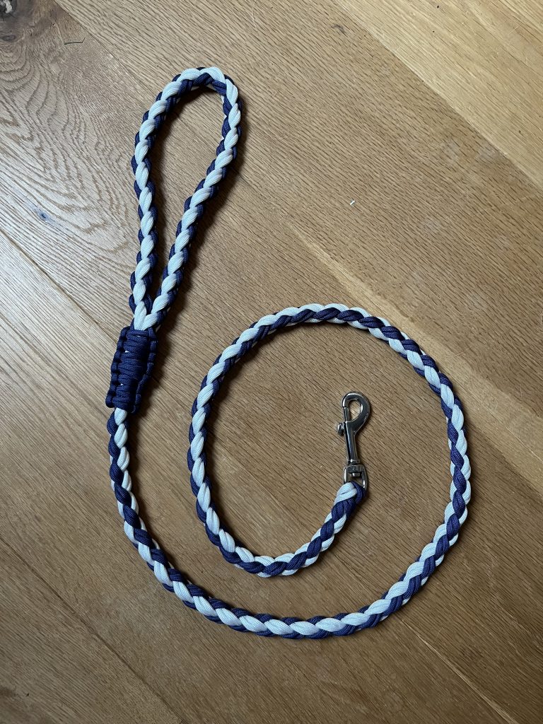 Leine für Welpen / kleine Hunde (je nach Länge zwischen 12€ und 20€)3-fach verstellbare Leine, 2m, komplett geflochten mit Muster „Rund“ (39€)3-fach verstellbare Leine, 2m, komplett geflochten mit Muster „Gitter“ (50€)Retriverleine „Emma“ 2,85m komplett geflochten mit Muster „Gitter“ (75€)